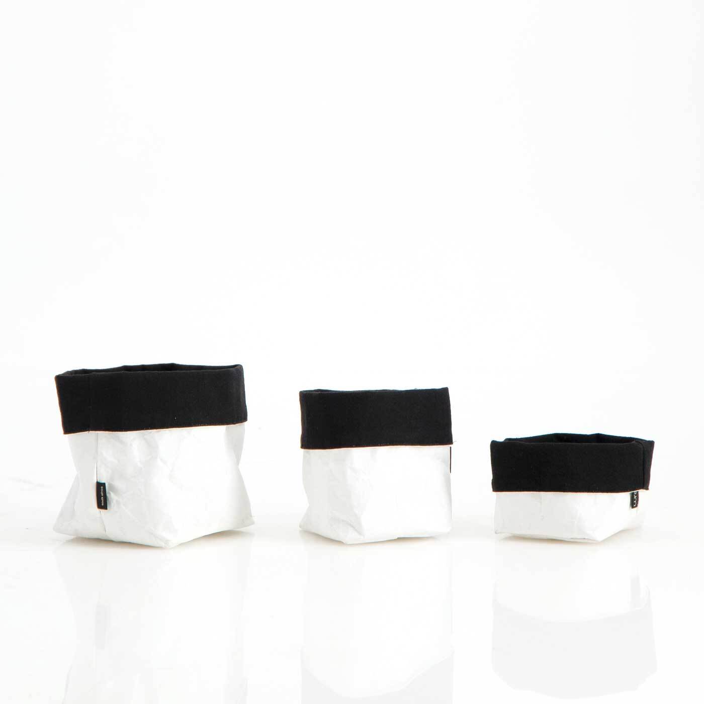 コットン裏地 ペーパーバッグ 小物入れ 収納ボックス 【白・Sサイズ】モノトーン